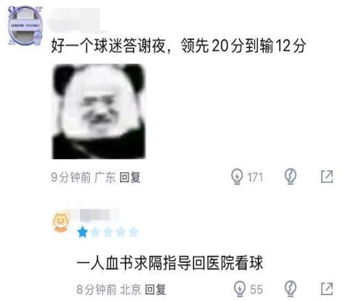 杜鋒對于皮特森這一點的防守,確實是相當失敗的,球迷也熱議道:“好一個球迷答謝夜,領(lǐng)先20分到輸12分”、“一人血書,求隔指導回醫(yī)院看球”。