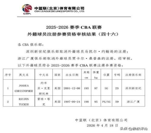 此外,深圳新小外援約書亞·克里斯托弗已經(jīng)完成注冊,此役極大概率會(huì)迎來CBA首秀。