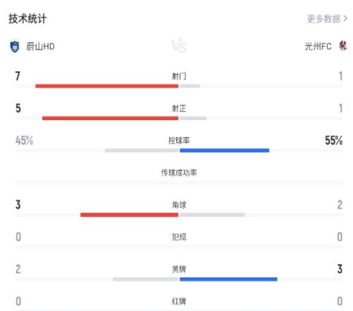 第20分鐘,申昶武臨空抽射,光州迅速扳平比分1-1↓↓↓