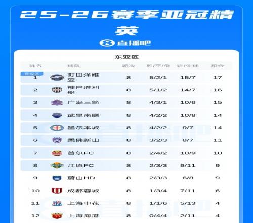 這2支J聯(lián)賽球隊(duì)正是聯(lián)賽階段東亞區(qū)的前2名,町田澤維亞在聯(lián)賽階段8場(chǎng)5勝2平1負(fù)積17分排東亞區(qū)第1,神戶(hù)勝利船8場(chǎng)5勝1平2負(fù)積16分排第2。