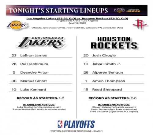 體育播報4月19日宣 今天上午8點30,湖人和火箭的首輪系列賽G1將正式開打。