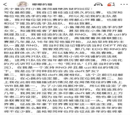 自己是Deft夢女,《小魚薄荷》是某位選手的夢女文,我曾經追的主隊是RNG、本人是Uzi的粉絲。