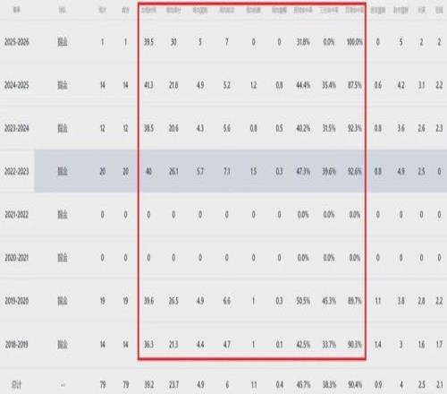 其實(shí)穆雷從來(lái)不是依靠罰球影響比賽的球員,本賽季常規(guī)賽場(chǎng)均罰球5.2次中4.6球,其中場(chǎng)均5.2罰為個(gè)人NBA生涯新高,以往通常每個(gè)賽季常規(guī)賽期間場(chǎng)均才站上罰球線3次左右,至于過(guò)去季后賽場(chǎng)均罰球數(shù)雖有所上升可也僅4次左右。