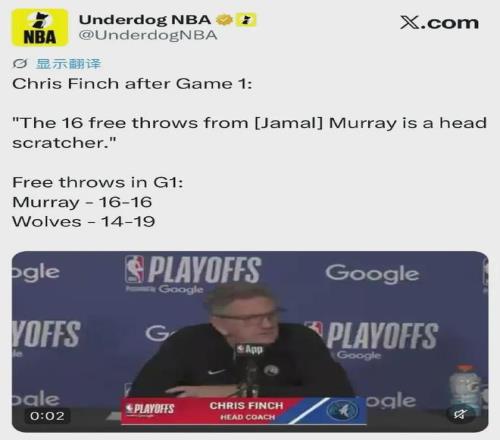 森林狼主帥芬奇倒是對(duì)穆雷16次罰球很是不滿,聲稱這令人費(fèi)解。
