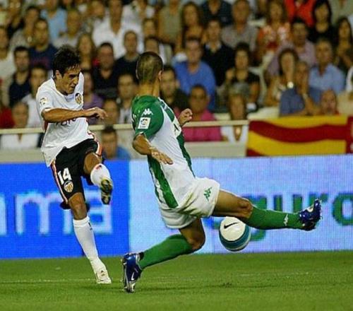 到了2003-04賽季,22歲的維森特迎來(lái)了職業(yè)生涯的大爆發(fā)。那個(gè)賽季的他,簡(jiǎn)直就是西甲所有右后衛(wèi)的噩夢(mèng)。他能在極小的空間內(nèi)完成變向,速度快得像一道閃電,傳中更是像裝了制導(dǎo)雷達(dá)一樣精準(zhǔn)。在他的幫助下,瓦倫西亞稱霸西甲聯(lián)賽。