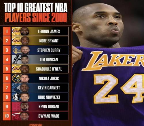 2000年后NBA最強(qiáng)十人排位:詹姆斯熬過(guò)科比奪榜首庫(kù)里反超奧尼爾