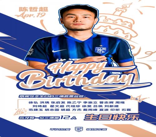 祝陳哲超生日快樂!同祝每一位三鎮(zhèn)“第12人”生日快樂!