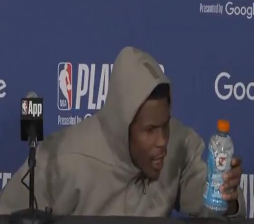 賽后,唐斯參加新聞發(fā)布會時品嘗了官方指定飲品佳得樂,擺出了一副不可思議仿佛佳得樂是國窖的表情!