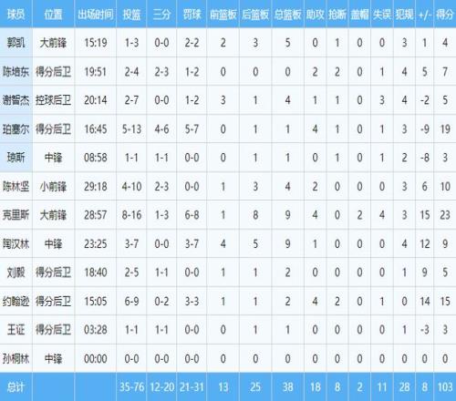 克里斯復(fù)出后的第二場比賽,帶領(lǐng)山東隊(duì)重返勝軌。不可否認(rèn),即便克里斯存在情緒問題,但以他的能力,依然是球隊(duì)爭勝的基本盤。23分9籃板4助攻2搶斷的數(shù)據(jù)足以證明,他才是全隊(duì)場上真正的核心??死锼乖u(píng)分9.6分。