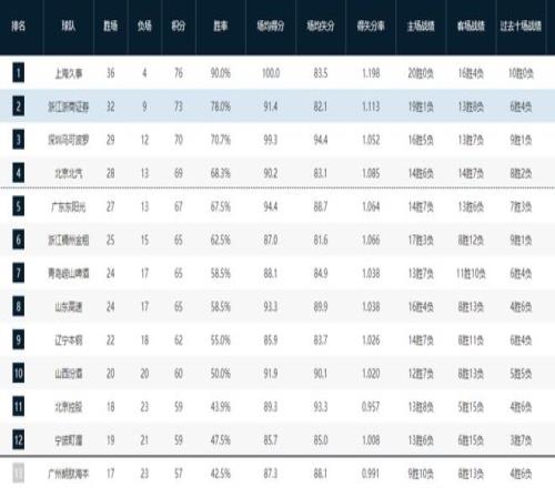 CBA最新排名!北京爭(zhēng)四占據(jù)主動(dòng)權(quán),山東鎖定第八,北控出線太難