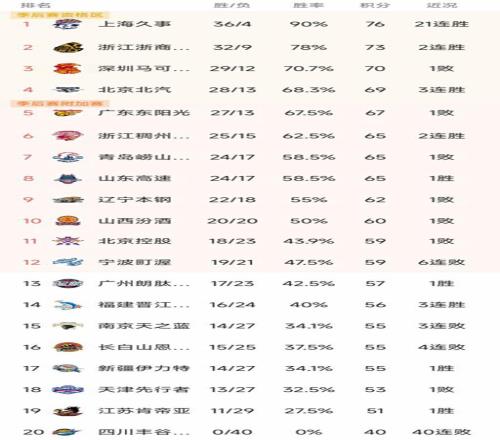 CBA最新積分榜