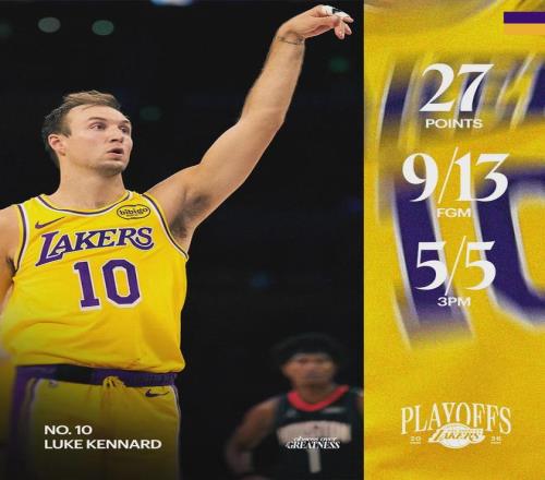 還有一個更加炸裂的對比:過去兩個賽季,文森特一共為湖人打了10場季后賽,加起來得到21分,而肯納德在湖人的季后賽首秀就拿到了27分。