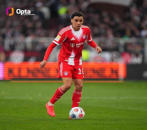 此役主場對陣斯圖加特,穆西亞拉首發(fā)出戰(zhàn),迎來代表拜仁慕尼黑出戰(zhàn)的第150場德甲比賽。