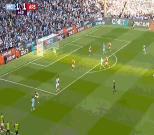 第83分鐘,加布里埃爾壓倒哈蘭德,雙方發(fā)生頂牛,各吃到一張黃牌。