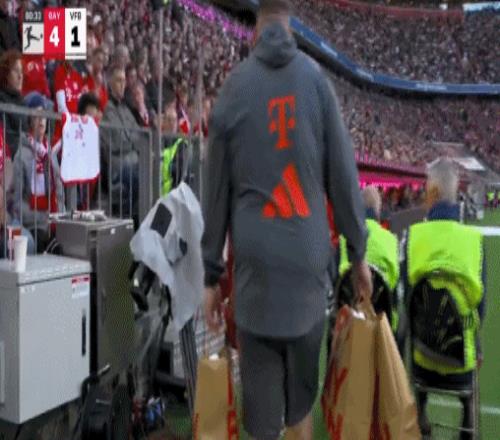 小紅書丨準(zhǔn)備就緒,拜仁工作人員將奪冠T恤拿到場(chǎng)邊