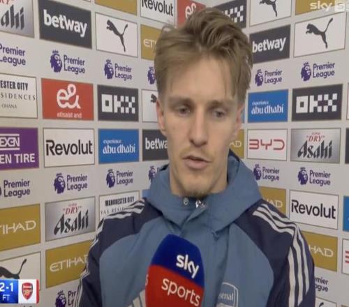 英超第33輪客場(chǎng)1-2不敵曼城之后,阿森納隊(duì)長(zhǎng)厄德高接受了天空體育的采訪。