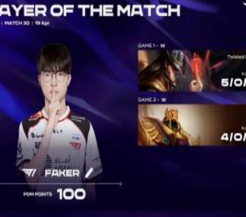 電競體育4月19報道 在今日的LCK常規(guī)賽上,T1以2-0的比分橫掃KRX,本場BO3中Faker狀態(tài)神勇兩局一次不死打出9-0-14的戰(zhàn)績!
