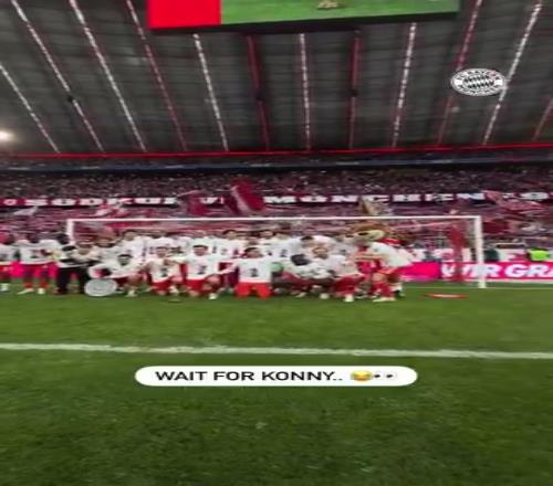 拜仁全隊(duì)賽后大合照慶祝,萊默爾姍姍來(lái)遲、迪亞斯搞怪開(kāi)溜
