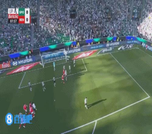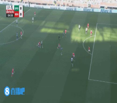 第8分鐘,本菲卡右側角球開出,前點奧塔門迪頭球攻門!皮球被門將撲出↓