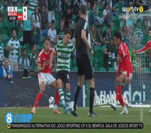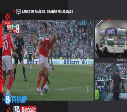 第17分鐘,特林康禁區(qū)內(nèi)與奧瑟斯相撞后倒地,主裁判親自觀看VAR,判給葡萄牙體育一粒點球↓