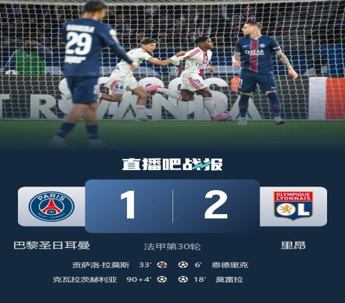 全場比賽結(jié)束,巴黎1-2里昂。