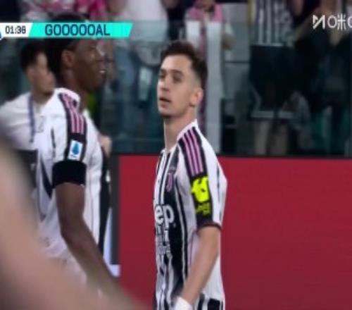 第2分鐘,尤文角球機(jī)會(huì)被解圍,外圍尤文繼續(xù)控球,右肋位置卡盧盧繼續(xù)送出傳中,禁區(qū)內(nèi)戴維搶前點(diǎn)頭槌破門!尤文1-0領(lǐng)先↓