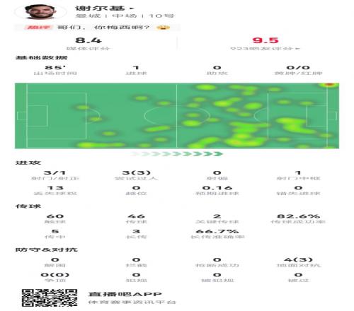 體育播報4月20日宣 曼城在本輪英超對陣阿森納,謝爾基本場數(shù)據(jù)如下: