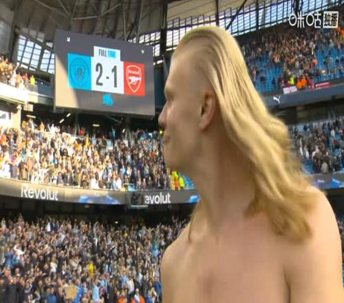 體育播報04月20日宣 曼城本輪2-1擊敗阿森納,哈蘭德賽后脫去上衣,現(xiàn)在是金發(fā)美人哈蘭德!