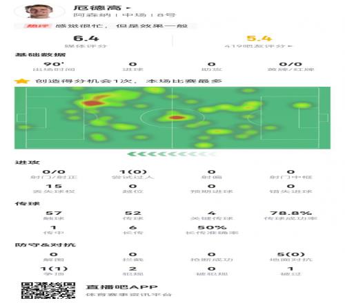 體育播報4月20日宣 阿森納在本輪英超1-2不敵曼城,厄德高本場數(shù)據(jù)如下: