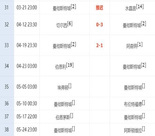 本場過后,曼城在少賽1場的情況下,落后阿森納3分,而且凈勝球只差1個(gè)。本周中,曼城將提前進(jìn)行第34輪的比賽,屆時(shí)他們做客對陣伯恩利,如果能擊敗對手,曼城就將反超阿森納,排名升上第一位。