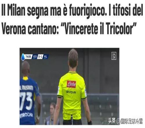 根據(jù)DAZN臺的介紹,維羅納球迷對著AC米蘭球員高唱“Vincerete, vincerete, vincerete il Tricolor”(你們會贏,會贏,會贏得冠軍三色旗)。然而在這樣的歌聲下,很多AC米蘭球員卻是有些垂頭喪氣。