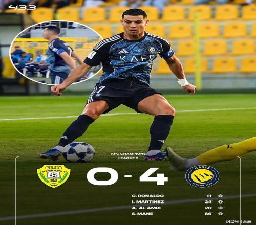 亞冠二級(jí)聯(lián)賽1/4決賽,利雅得勝利客場(chǎng)4-0迪拜祈禱,晉級(jí)四強(qiáng)。C羅推射破門(mén),打入職業(yè)生涯第969球,菲利克斯雙響,伊尼戈-馬丁內(nèi)斯、阿姆里破門(mén),馬內(nèi)錦上添花。