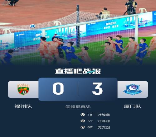 下半場補時4分鐘,福州0-3廈門。