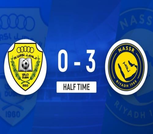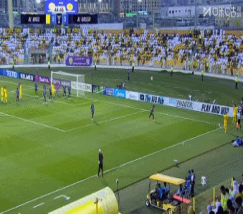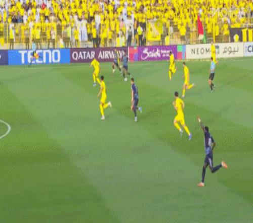 傷停補時4分鐘。上半場比賽結束,利雅得勝利3-0迪拜祈禱。