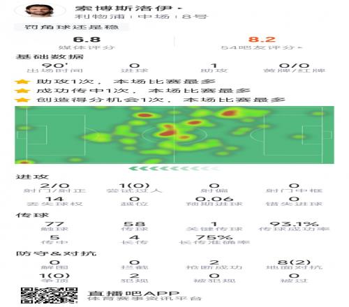 體育播報4月19日宣 在本輪英超,利物浦2-1擊敗埃弗頓,索博斯洛伊送出絕殺助攻,以下為他在本場數(shù)據(jù):