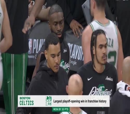 此役凱爾特人攻防兩端壓制對手,最終取得了32分的大勝,4節(jié)單節(jié)比分全部高于76人,也是隊史季后賽揭幕戰(zhàn)最大分差的勝利。