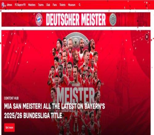 拜仁官網(wǎng)首頁(yè)慶祝冠軍。