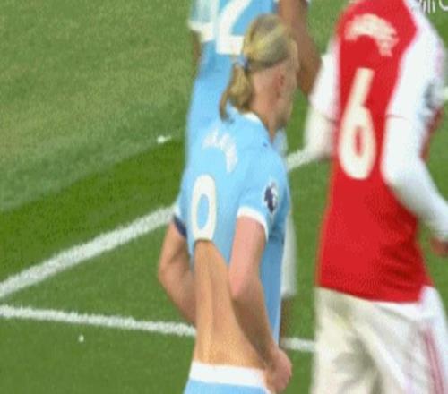 第67分鐘,哈蘭德在加布的防守下球衣被撕爛。