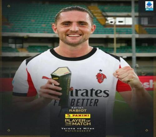 在本輪意甲,米蘭1-0小勝維羅納。本場(chǎng)比賽拉比奧打進(jìn)全場(chǎng)唯一進(jìn)球,賽后他也當(dāng)選意甲官方評(píng)選出的本場(chǎng)比賽最佳球員。
