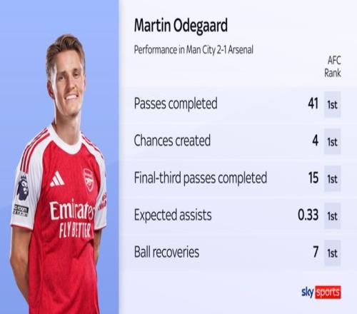 在伊蒂哈德球場(chǎng),阿森納展示出了更大的進(jìn)攻自由。就像之前提到的,厄德高再一次證明了自己才是阿森納的進(jìn)攻靈感來源。