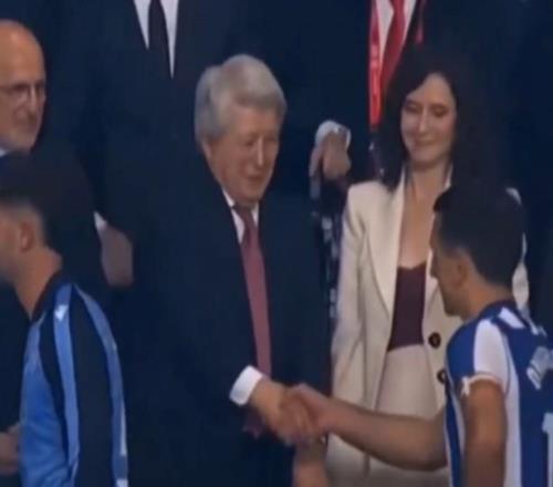 皇家社會(huì)隊(duì)長(zhǎng)奧亞薩瓦爾在走上貴賓席時(shí),直接無(wú)視了馬德里自治區(qū)主席伊莎貝爾-迪亞斯-阿尤索,直接和馬德里競(jìng)技主席恩里克-塞雷佐開始握手。