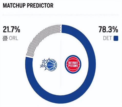 賽前,美媒ESPN對(duì)本場(chǎng)比賽進(jìn)行了勝率預(yù)測(cè),魔術(shù)隊(duì)勝率僅有可憐的21.7% ,活塞勝率則為高達(dá)78.3% ,對(duì)比非常明顯。