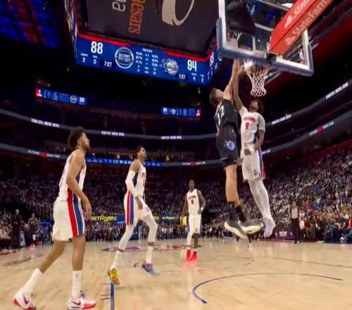 次節(jié)回來(lái),坎寧安在替補(bǔ)席休息,胸部和背部裹著厚厚的繃帶,還是在帶傷出戰(zhàn)。詹金斯精彩跳起擊地傳球,霍蘭德反擊獻(xiàn)上雙手暴扣,卡特三分線外搭弓射箭接球穩(wěn)穩(wěn)命中,立馬回應(yīng)。布萊克空切接球再完成暴扣,魔術(shù)重新領(lǐng)先到9分。坎寧安突破拋投打進(jìn)后再中三分球,班凱羅連續(xù)強(qiáng)殺籃下造殺傷,半場(chǎng)戰(zhàn)罷,魔術(shù)55-51領(lǐng)先活塞4分。