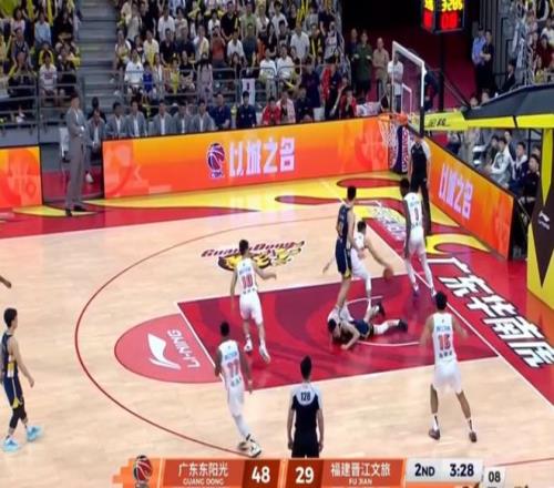 本場比賽的第二節(jié)比賽中,廣東隊以48-29領(lǐng)先19分,崔永熙在無人防守的情況下沿著底線突破,只見他來到了籃下高高躍起準(zhǔn)備表演一個暴扣。