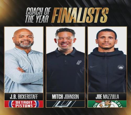 馬刺主教練米奇-約翰遜入選最佳教練的候選名單,而且很有希望獲獎(jiǎng)。馬刺常規(guī)賽62勝20負(fù)聯(lián)盟第二,比活塞多2個(gè)勝場(chǎng)。大家應(yīng)該都知道,開(kāi)拓者主教練斯普利特是馬刺舊將。賽前介紹環(huán)節(jié),全場(chǎng)馬刺球迷給斯普利特送上了掌聲。