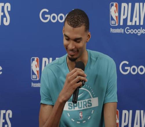 北京時間4月19日,NBA季后賽首輪的爭奪繼續(xù)進行,在一組西部對決中,馬刺主場111-98戰(zhàn)勝開拓者,總比分1-0領先。賽后,馬刺隊中鋒文班亞馬接受了媒體的采訪。