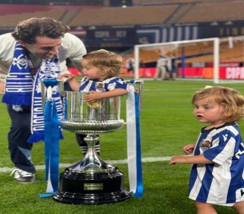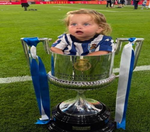 比賽結(jié)束后,皇家社會(huì)后衛(wèi)奧德里奧索拉帶著女兒上場(chǎng)慶祝,他把女兒塞到了國(guó)王杯獎(jiǎng)杯里進(jìn)行慶祝。