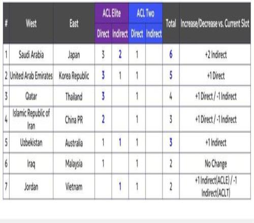 據(jù)悉,根據(jù)亞冠精英聯(lián)賽、亞冠二級(jí)聯(lián)賽擬議的全新名額分配方案,日本和沙特將各有6家俱樂(lè)部獲得洲際賽事參賽資格。