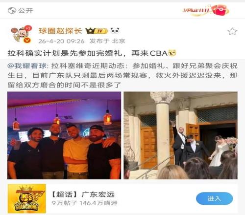 “新大外”幾時(shí)到?相信每位宏遠(yuǎn)球迷都非常關(guān)心這個(gè)問題,畢竟從第一階段休賽期到第二階段快打完,廣東一直在找新大外,卻一直沒有根本性的進(jìn)展。前兩天好不容易新大外拉科塞維奇自宣加盟廣東,終于確定好人選,但拉科卻遲遲沒有動(dòng)身的意思,個(gè)人社交媒體不是在曬參加婚禮的動(dòng)態(tài),就是曬自己訓(xùn)練的照片和視頻,就是不說什么時(shí)候要來。好在根據(jù)最新消息,拉科確定在參加完婚禮后就正式出發(fā),預(yù)計(jì)明日啟程前往中國,有望趕上廣東常規(guī)賽的最后一戰(zhàn)!