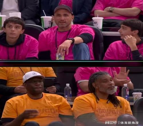 看看場邊,老鄧肯與另一位傳奇名宿“上將”大衛(wèi)·羅賓遜笑得合不攏嘴,退役后的他們,終于可以毫無顧忌地開懷大笑了。想當(dāng)年,鄧肯若是在場上有如此表現(xiàn),恐怕早就因?yàn)榍榫w激動而領(lǐng)到技術(shù)犯規(guī),甚至面臨自動禁賽的處罰了,哈哈,如今這光景,真是讓人感慨萬千。鄧肯大爺看到如今這支煥發(fā)新生的馬刺,心中定是充滿了喜悅。不過,令人好奇的是,鄧肯怎么沒和吉諾比利坐在一起呢?難道真的是“頭發(fā)多的不能和禿的坐一起”嗎?想象一下,如果粉色的吉諾比利、黃色的鄧肯,再加上藍(lán)色的帕克齊聚一堂,那畫面該是多么完美??!